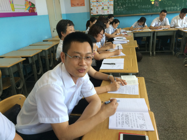 党员教师讲解学习材料。