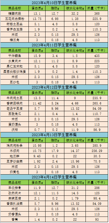 22-23下 2023年4月10日-4月14日学生午餐食谱