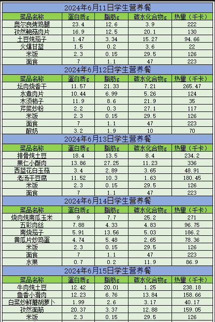 23-24下 2024年6月11日-6月15日学生午餐食谱