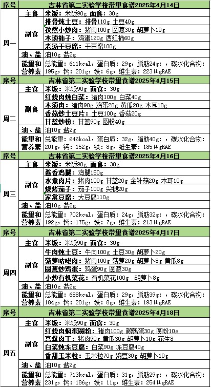 24-25下2025年4月14日-4月18日学生午餐食谱