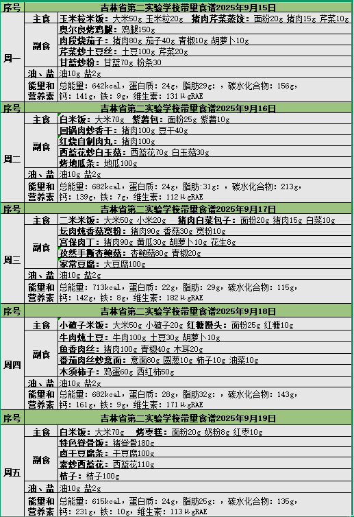 25-26上2025年9月15日---9月19日学生午餐食谱