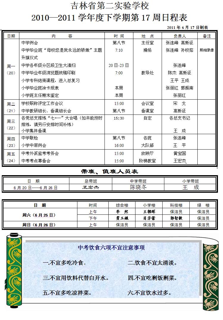 第十七周日程表