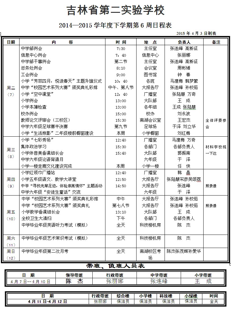 第六周日程表