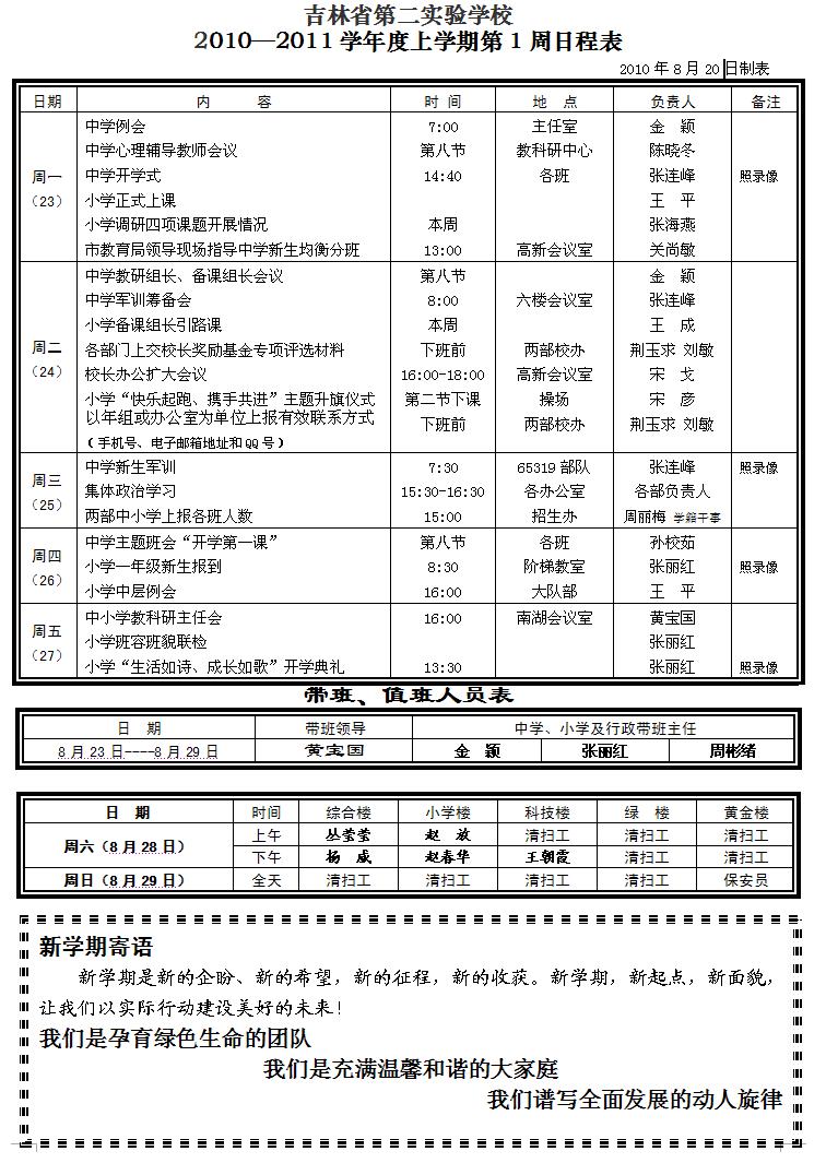 第一周日程表