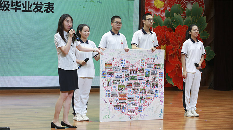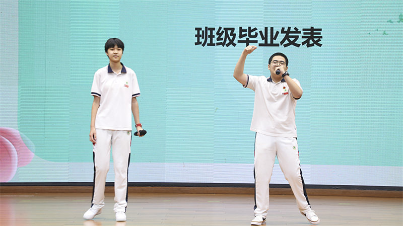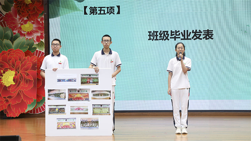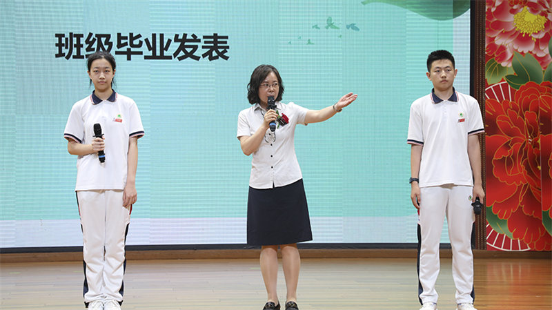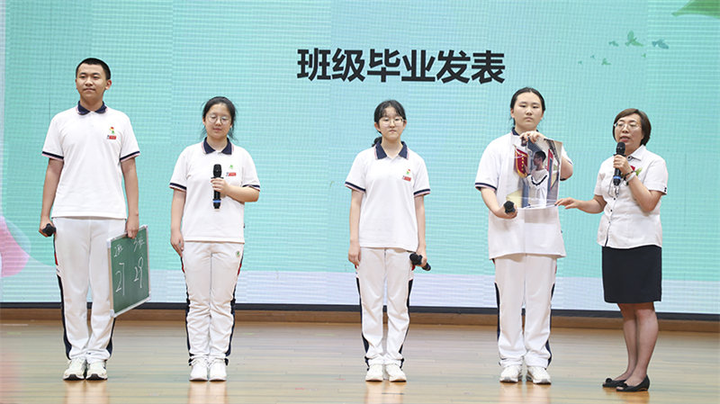 刘雪飞老师和齐心协力,不负众望的九年2班做毕业发表。担当宣言,讲述班级故事