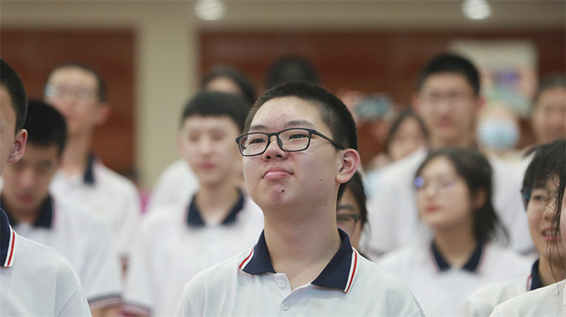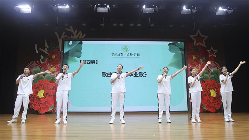 “感谢你给我的光荣,我要对你深深地鞠躬,因为付出的努力有人能懂。感谢你给我的光荣,这个少年曾经多普通,是你让我把梦做到最巅峰。”多少清晨日暮,前行中总有老师们的陪伴;因为被关注,被肯定,被呵护,所以省二少年充满光彩。全体毕业生面向师长,用歌声感恩师长,感恩母校!