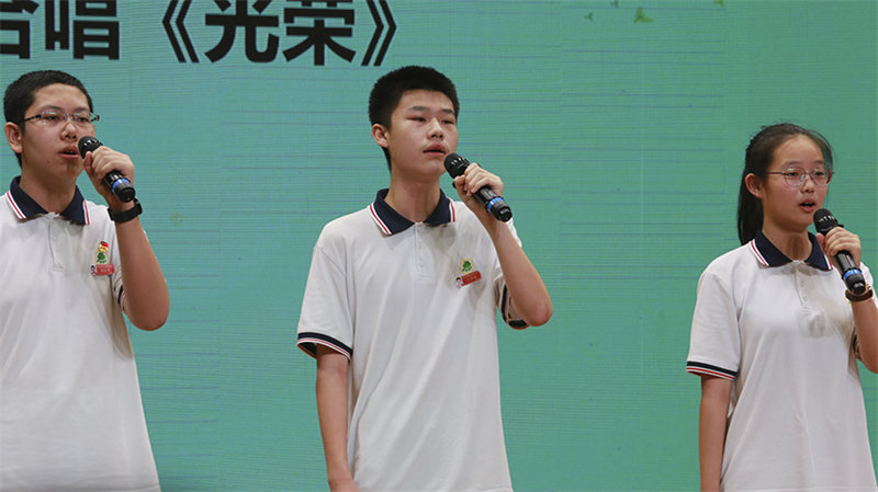 偌大的校园,温馨的教室,同学们有“指点江山、激扬文字”的书生意气;有“歌声振林樾”“儿童捉柳花”的美好记忆。再见,可爱的校园,少年们今日毕业,明日又将开启新的征程。毕业班学子共唱《毕业歌》,未来的日子,充满期待。