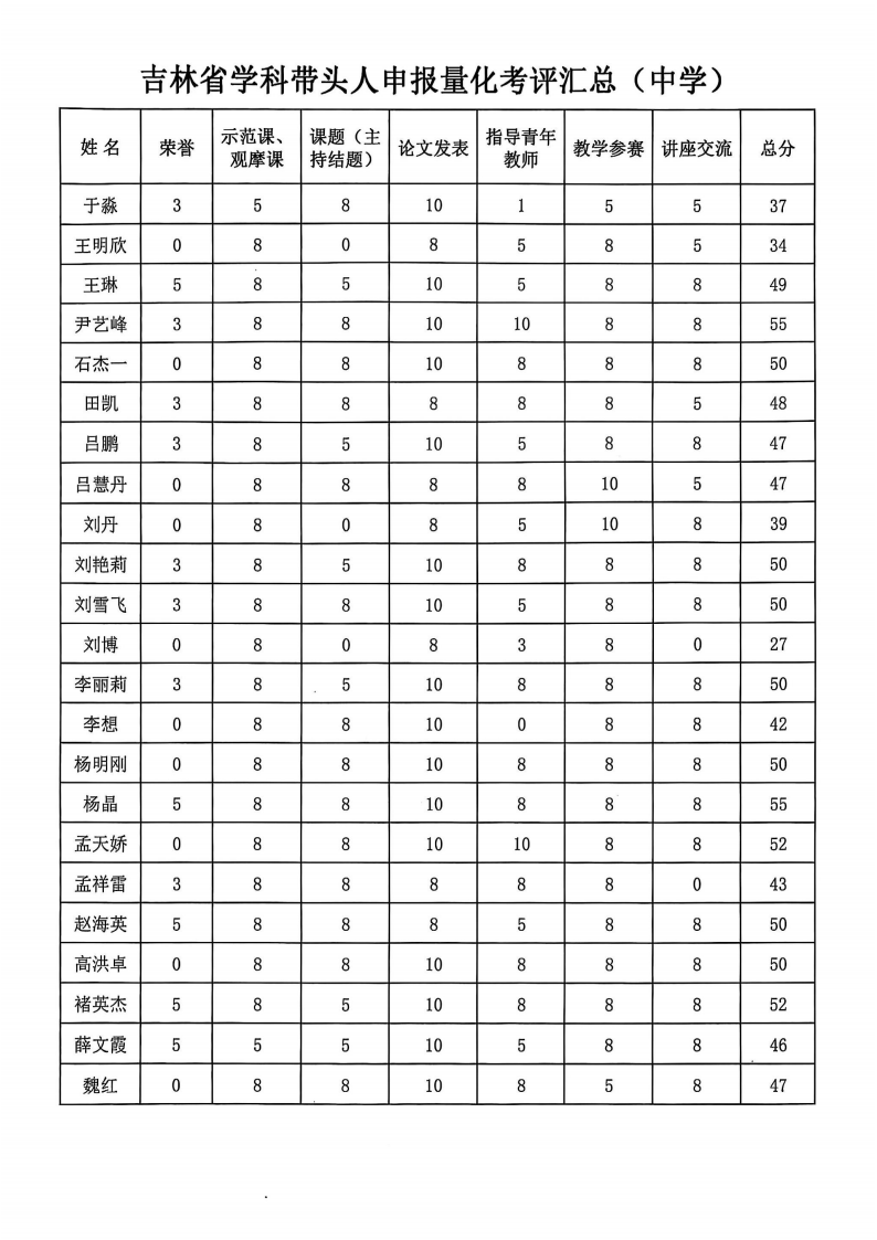 吉林省第七批中小学青年学科带头人申报公示