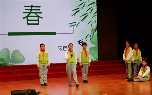 一篇春的赞歌拉开了活动的序幕,五年级同学以清新明快的语调为我们展示了朱自清那叙不完的诗情和看不尽的画意。在这春暖花开的季节里,听来甚是舒心悦耳,娓娓动听。