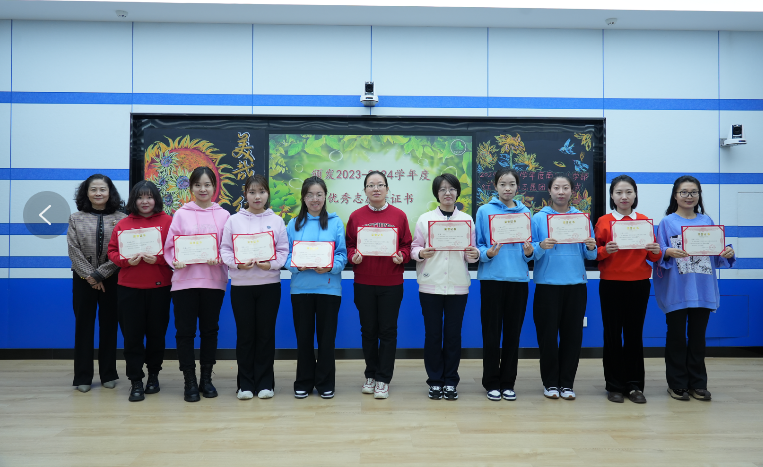 在过去的一年里,志愿者们真诚地走近学生,听他们诉说心事儿,陪他们在操场上走走或者静静地在书屋一起读书。老师们为学生解决心理难题,用真心和爱心为学生的心理强健助力赋能。石馨副校长为2023-2024学年度优秀的志愿者们颁发了荣誉证书。