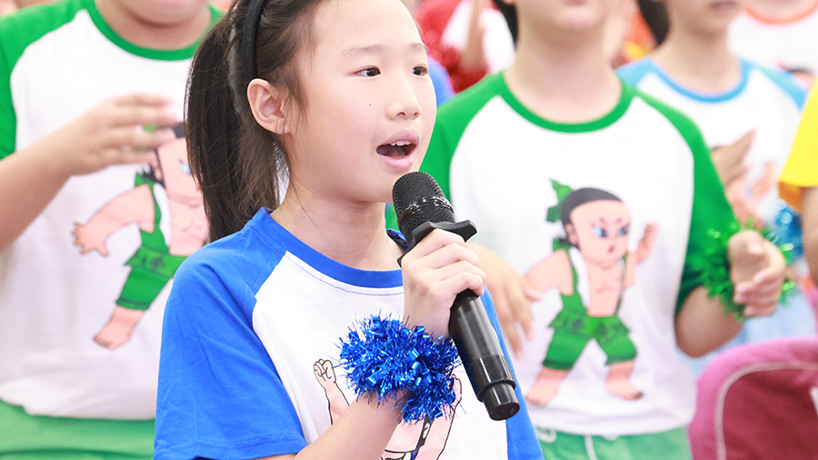 进入会场,各班级拉歌暖场。五年级师生化身音乐魔法师,用清脆独唱演绎俏皮,用激昂领唱点燃热血,用稚嫩嗓音诉说友谊的温暖,或独唱或全班齐声合唱,让歌声化作翅膀飞向云霄。一首首经典童谣如缤纷气球腾空而起,将现场编织成充满欢笑与星光的童话王国,每一个跳动的节奏都在诉说童年最纯真的快乐。