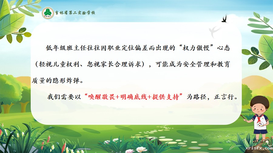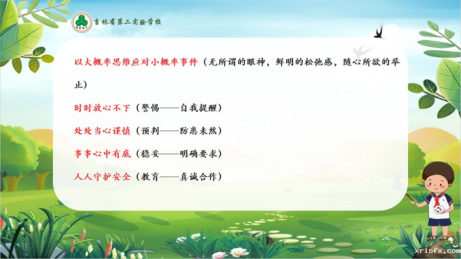教育是智慧的陪伴,是心灵的唤醒;安全是教育的底线,是守护的保障。老师们定会把安全扛在肩上,把合作化为行动,把共赢记在心间。