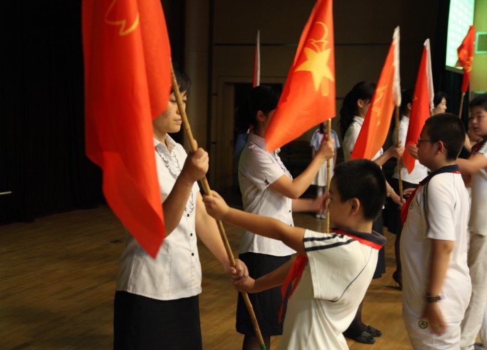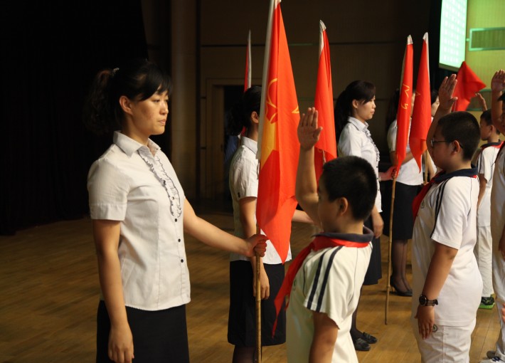 授旗仪式非常规范,动作整齐、漂亮、严肃,让新少先队员们在庄严中体验光荣