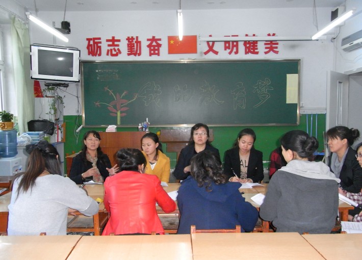教导处王成主任、马建梅副主任等领导到各个年组与老师们一起探讨“教育梦”