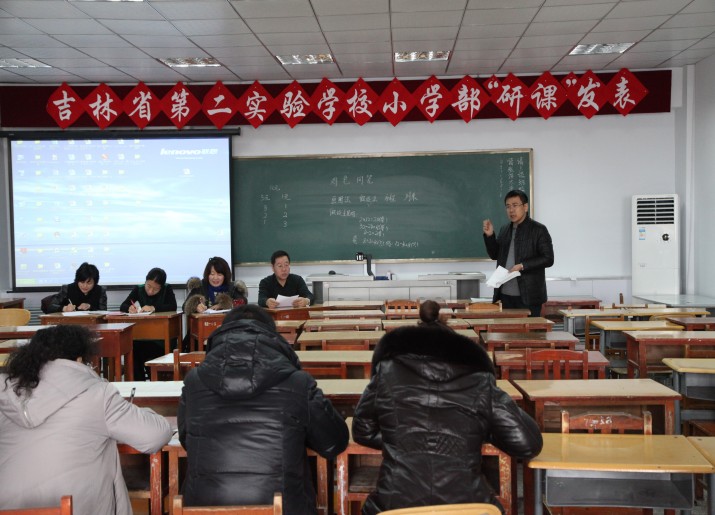 在本学期初,小学教导处就布置了更为详尽的研课计划,要求人人参与上课,研讨一定要达到满意效果为止。研课发表的形式也在原有理论总结的基础之上加入了授课发表,将研课成果更为直观的展示在大家面前。 研课的热情充斥在每一间教研室,思维碰撞的火花照亮了我们的教学探索之途,每天的收获与进步亦让人觉得夜里数着星星离开校园心中都是一份沉甸甸的满足。 本学期期末“研课”发表更像是一顿饕餮大餐,各个年级的各个学科教研组纷纷带着各自丰硕的研课成果“粉墨登场”。课堂展示、总结发表、答疑互动,多项展示让成果的呈现更加全面立体。一节节好课让人眼前一亮,一个个经验的发表让人豁然开朗。上课的人激动,总结的人激动,听课的人更激动:主动提问、激烈地争论让所有与会者大呼“过瘾”!整个研课发表活动持续了十余天,真正地让小学部所有教师享用了一份精神的盛宴! 我们的“研课”发表刚刚进行两天,吉林省教育学院“国培”班的农村骨干校长及通化地区的领导和老师们也专程来观摩我们的“研课”活动。会后,他们说:“这是看的最有实效的研讨,最接地气的教研,回去我们也这样做!”“研课”活动犹如做一次有氧体操,使我们的课堂教学走出“深闺”,走向专业引领、同伴互助的“阳光地带”!当课堂的门被推开后,我们呼吸到的不仅是新鲜空气,更重要的是改善了行走方式,自觉生成出更加适合儿童生长的教学模式!