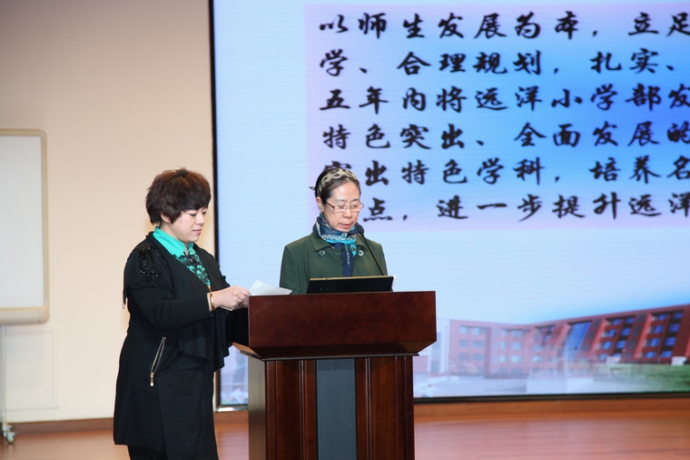 远洋校区小学部王平助理向大会做部门工作简要总结