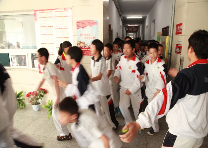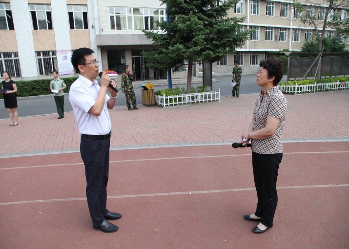 中学部张连峰主任向宋戈校长汇报全体中学师生已经安全撤离完毕