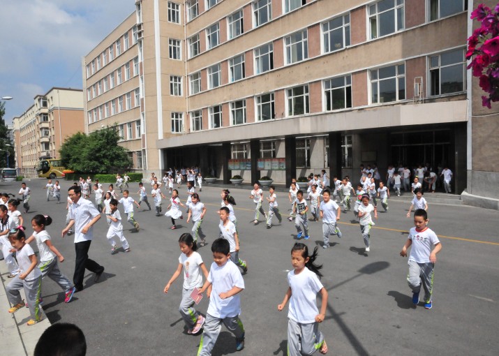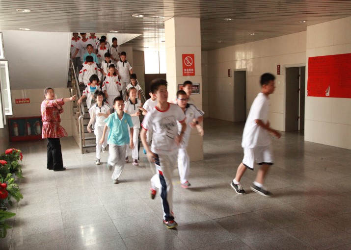 中、小学各楼层负责教师向主管主任汇报撤离情况