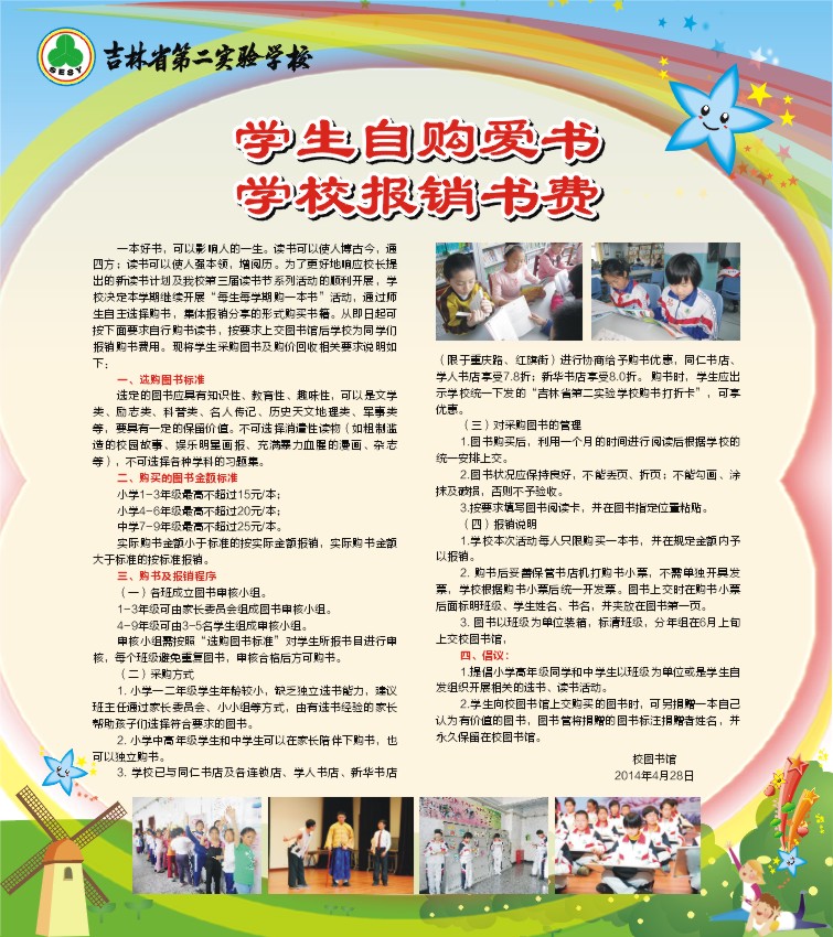 “学生自购爱书、学校报销书费”,这是我校每年读书节的活动之一,是宋戈校长倡导发起的新读书计划。至今,我校已经连续四年通过这种形式购买了大批书籍,在师生中不断掀起读书学习的热潮。