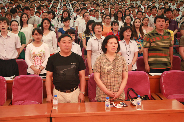 关尚敏书记、王宏杰副校长与全体师生齐唱校歌