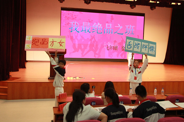 大会在下一阶段组织了“班级之最”演讲大赛,来自不同年级的九位参赛选手观察班级生活,为自己的班级选取了一个最能彰显班级文化的关键词来体现班级个性,评委们根据学生们的表现进行现场打分。最终,来自七年9班的林谿同学凭借富有创意的设计和十足的感染力征服了评委和观众,荣获特等奖。八年1班刘安琪、七年9班徐子濛、六年11班陈禹彤、六年1班马小越、七年8班陈德龙、八年4班贾晶茹、八年6班郭翰卓、六年2班孙艺轩等几位同学同样展示了自己的才能,分获一等奖和二等奖。张连峰主任代表中学部为获奖同学颁发了荣誉证书。