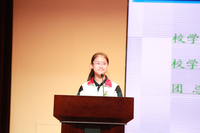 大会的第一个环节由学生代表结合校园生活的见闻,向学校发表倡议提案。各年级的学生会主席孙铭遥、方馨悦、李映佳同学及校学生会主席赵玮健同学、副主席陈昱欣同学、团总支书记蒋霄敏同学分别针对学生午餐、乘坐班车、携带手机、学生发式等情况向校领导和老师们提出了建议,希望这些建议能够促进同学们更好地享受校园的美好生活。