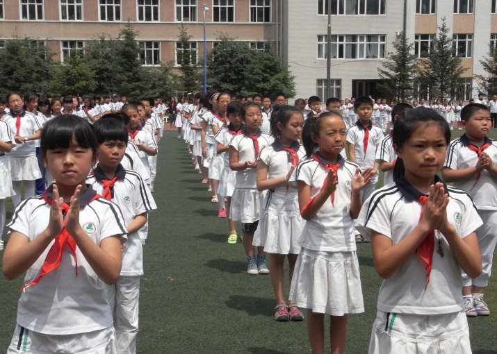 2014年6月16日上午,小学部在操场上举行了“ 有效学习,快乐期末”主题升旗仪式。认领本次升旗仪式的班级是四年五班,班主任是宋彦老师,担任本次升旗仪式的主持人是校大队干部吴邵欣同学,升旗手由优秀担当张轶群同学担任,护旗手由优秀担当曽翔晨和倪子涵两名同学共同担任,国旗仪仗队由四年五班全体优秀少先队员组成。 在升旗仪式进行前,四年五班同学早早就位,个个庄严肃穆,精神抖擞。首先由主持人吴邵欣同学庄重宣布升旗仪式开始,郭振南副主任为升旗手同学佩戴光荣的升旗手绶带,接着四年五班仪仗队同学伴着有节奏的韵律迈着铿锵有力的步伐走到升旗台前,进行庄严的升旗。然后由宋彦老师和大队干部樊弋宁同学伴着舒缓的轻音乐为全体同学带来动情的师生对话《在希望中启航》,紧接着由班级中学习优秀的赵蕴涵、郭向轩、杨天锐、仇鹏浩4名同学分别针对语、数、外三科进行学习经验介绍。 全校同学都从中受益良多。 在这次升旗仪式中同学们感受到了老师对自己的期望,更懂得了学习要讲究方法,才能提高效率。