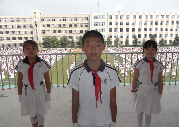 国旗仪仗队由四年五班全体优秀少先队员组成