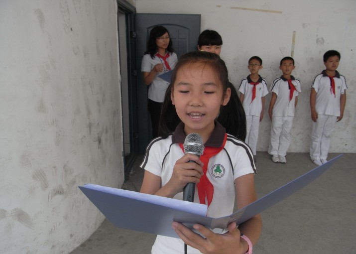 担任本次升旗仪式的主持人是校大队干部吴邵欣同学