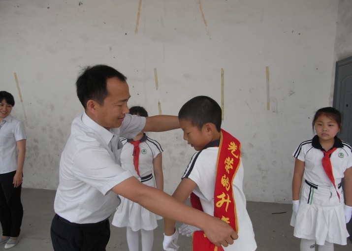 郭振南副主任为升旗手佩戴光荣的升旗手绶带