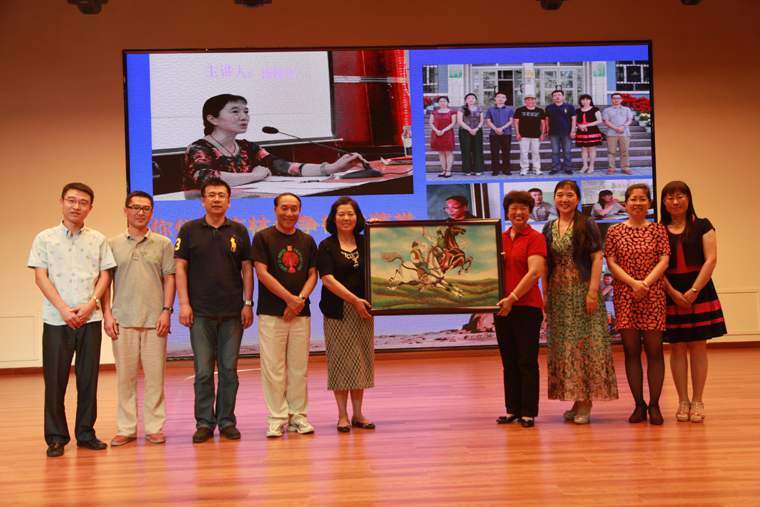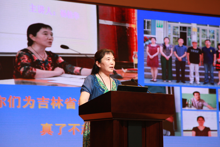 大会第四项,带给大家的是 “不容易”、“了不起”的同感。小学教导处杨桂华主任代表假期支教新疆团队(共7人),且代表领队辛雨时助理,向大会作了“骨干教师赴新疆阿勒泰地区讲学”主题工作总结。在假期里他们奔赴新疆阿勒泰,参加了由吉林省教育厅组织的支教讲学活动。在为期18天的支教生活中,他们成为了“援友”,互相鼓励、互相支持、并肩战斗,各自完成了内容各异的40学时的讲座培训,为阿勒泰地区受训教师送去了弥足珍贵的指导交流和教学资源,深受当地领导老师的欢迎与钦佩,获得了吉林省教育厅相关部门的首肯。参团的廉欣老师还将获赠的“宝石”画作转赠给了学校,宋戈校长、关尚敏书记代表学校接受转赠。宋戈校长即兴感言,感谢支教新疆讲学团队的各位老师牺牲个人假日休息时间,担负支教使命,辛苦付出,并对他们的“做到了”、“了不起”深感欣慰,对他们弘扬省二勇于担当、创造卓越的精神,把“不容易”的工作坚持做成做好,为吉林省争得了荣誉表示由衷的赞许和感谢!