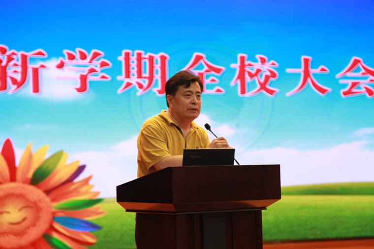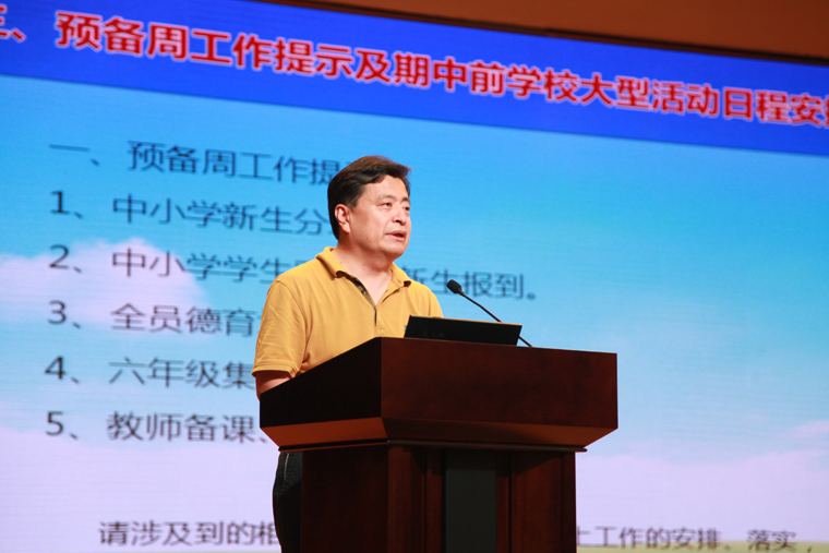 宋戈校长向大会公示通报新一届管理岗位人员名单并做新学期工作培训