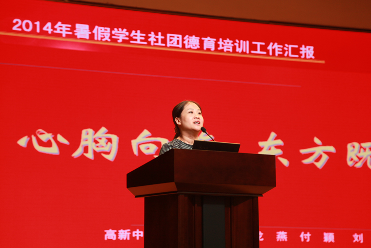 中学教导处石馨主任向大会做“心胸向海 东方既白”假期活动总结