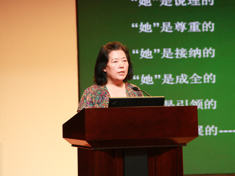 几位老师的分享与对话是那样真诚而深邃,会场的每一位教师都随着她们的交流,激发起自身与之相关的教育灵思。而此时,石馨主任的一席谈话更是引领我们进行更为深度的思考。她说:“随着时代的不同特点,教师要不断成长。如果说教师最美的爱从60年代到90年代分别是温暖、宽容、理解和尊重,那么现在教师最美的爱应该就是唤醒和成全,只有唤醒和成全一个孩子在她生命底色前提下的最健康、最积极的发展,她才能快乐。同时,教育要遵循规律,遵循身心成长规律,教师除了给予父母般的爱,更应该做有智慧的教育者;另外,教育要面向未来,面向当今的发展趋势,教育要关注不同类的孩子,公平地珍爱不同类型的人才。”