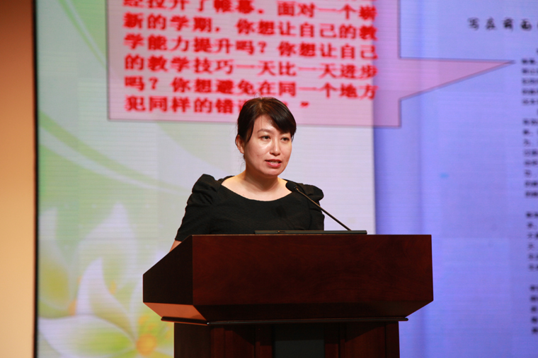 远洋中学部梁雪老师做《作业设计及处理有效性的几点思考和做法》专题发言