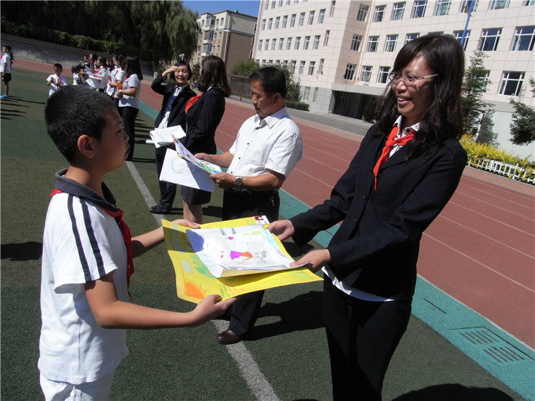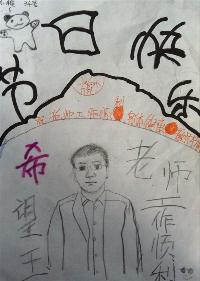 接着孩子们将他们亲手画的画像献给老师,用最美好的方式表达对老师的祝福。同时二年级学生代表李施慧、韩济帆用稚嫩的童声为老师们献上《一株紫丁香》。