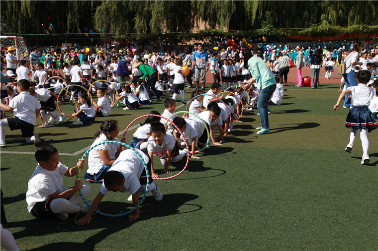 二年三班的同学们摇动着呼啦圈,彰显活力,张扬个性!