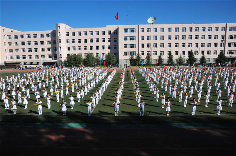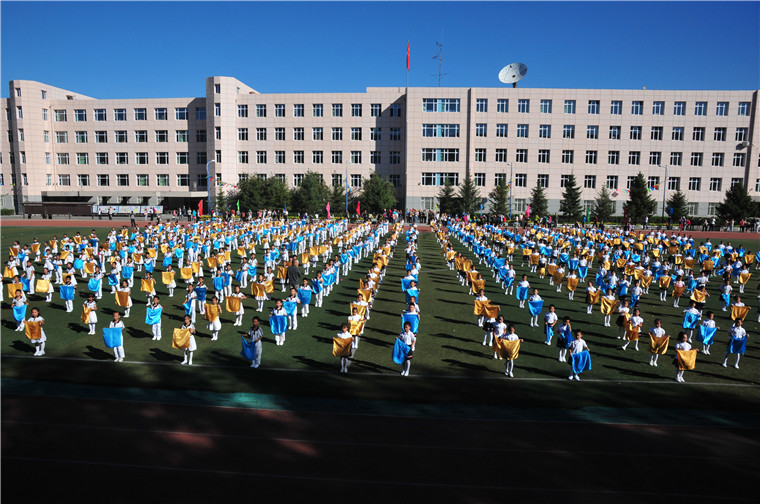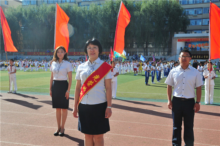 年级组长代表刘红梅老师担任升旗手,护旗手是荣获长春市教学大赛特等奖的杨帆老师、李臣老师