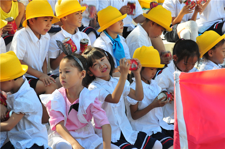 三年一班同学们手持色彩绚丽的翻花道具,绘出童年的色彩,放飞梦幻的希望。