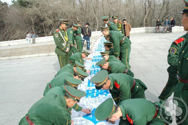解放军叔叔代我们向长春解放纪念碑敬鲜了花圈