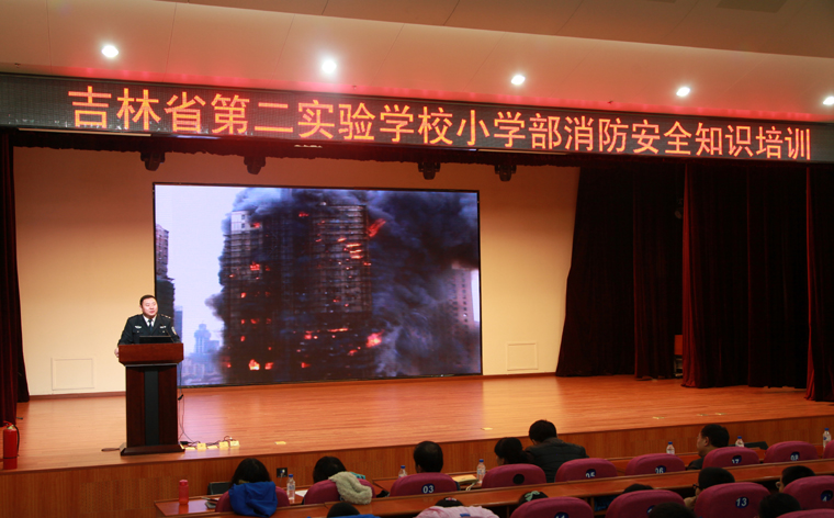 2014年11月19日,学校再次请到长春市安家消防知识服务中心主任对中、小学师生分别进行了“校园安全消防知识”主题讲座。王宏杰副校长、总务处周彬绪主任、张德岐副主任、中学部张连峰主任、小学部王成主任、校工会钟春副主席等同时与会,全校3400名师生共同听取了讲座。