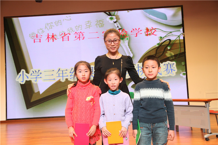 张媛老师与三年二班参赛选手合影留念