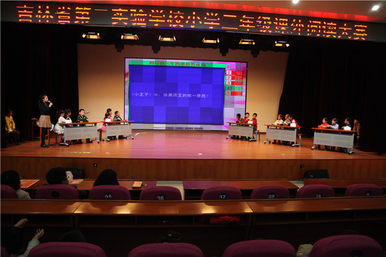 2014年11月21日下午,三年组全体师生齐聚阶梯教室,召开了首届“课外阅读挑战赛”。参会嘉宾有小学部教导处王成主任、马建梅副主任、张陆慧副主任、郭振南副主任。 本次比赛题型分三种:必答题、抢答题和挑战题。赛题是老师们根据本学期的推荐必读书目《水浒传》、《最后一头战象》、《草房子》和《小王子》中内容编创的。每班各派出一支代表队参赛,每支代表队由三名经过班级“海选”决出的优胜者组成。 一个小时的时间,台上的十五位参赛选手顺利通过了“必选题”的考核,又经过“抢答题”的激烈角逐,最后闯过了“挑战题”的终极难关。因为是第一次使用抢答器,同学们更是兴奋不已。整个活动过程中,大家兴致高涨,台上台下热情互动,聪明的小选手们很难分出高低,各班比分你追我赶,比分几度持平,比赛异常激烈。几番比拼过后,终于决出优胜班级——三年三班;三年三班的三名小选手又再次展开角逐,最后王子赫同学获胜,荣获了“阅读小博士”的光荣称号!教导处的几位主任分别为“阅读小博士”和各班参赛小选手颁发了奖状和纪念奖。台下的同学们也一直用掌声分享着这份属于所有人的荣誉! 最后,张陆慧副主任发表了讲话,她肯定了本次活动的意义和效果,表达了对同学们的殷切期望,告诉大家要多读书,养成良好的读书习惯,做一个有高贵灵魂的读书人! 阅读挑战赛的趣味性大大激发了学生们的阅读兴趣,同时也提醒了他们要养成良好的阅读习惯,从而提高阅读质量。比赛在大家的掌声和喜悦中结束,但孩子们对经典文学的阅读却不会止步,相信阅读会成为他们人生中永远的伙伴。