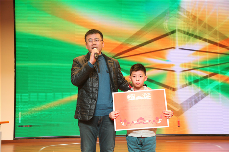 王成主任为获得“读书小博士”称号的王子赫同学颁发奖状并给予鼓励