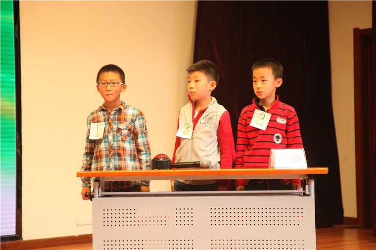 三年三班代表队胜出后,三位小选手继续角逐“读书小博士”的光荣称号