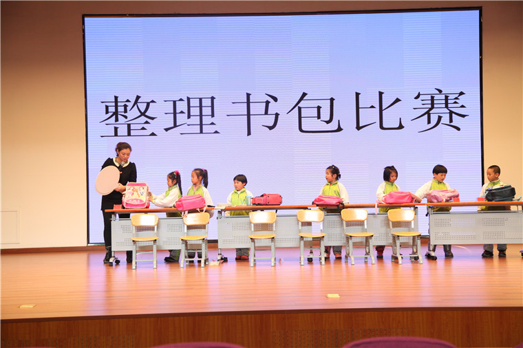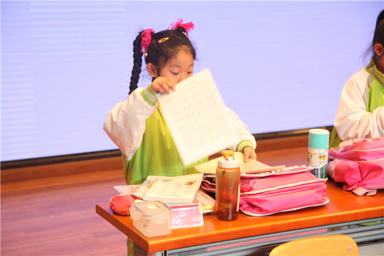 孩子们认真参加整理书包比赛