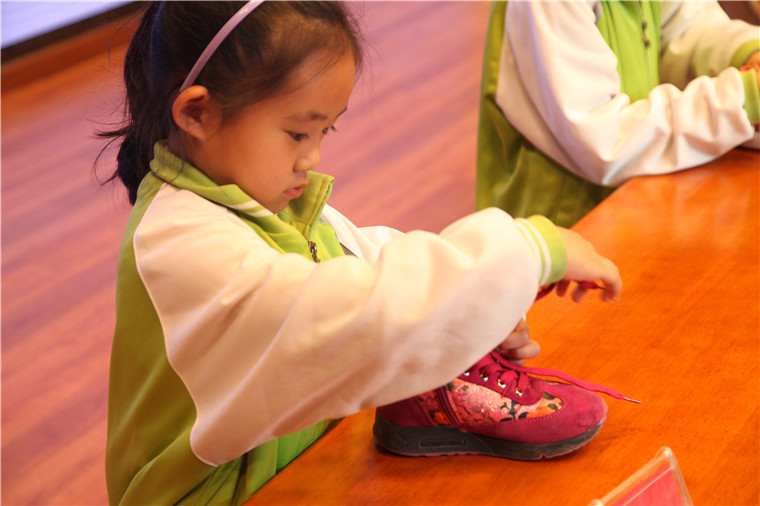 林媛老师细心为大家讲解系鞋带技巧
