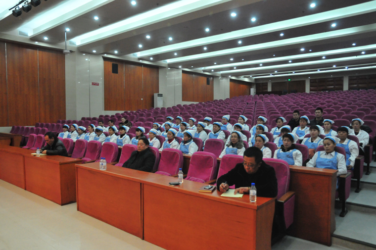 民以食为天,食以安为先。我校于2015年2月28日在阶梯教室召开食堂员工专业技能培训会。莅临本次培训会的领导有王宏杰副校长、周彬绪主任、张德岐副主任。本次食堂员工专业技能培训会请到的是多年来一直从事食堂管理工作的王儒群副主任。