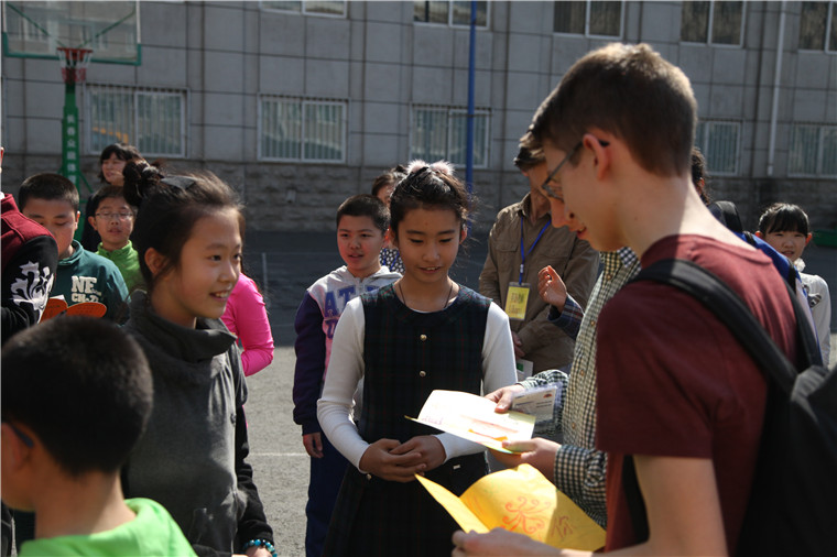 有朋自远方来,不亦乐乎。2015年4月1日下午,优米官网首页登录入口小学部迎来了美国圣克劳德州立大学孔子学院的师生们。 下午1时30分,美国圣克劳德州立大学孔子学院师生一行30余人抵达优米官网首页登录入口,我校关尚敏校长和小学的师生热情接待了来访友人。小学冬之灵合唱团演唱了一曲充满民族特色的《说唱脸谱》,让美国师生感受到了京剧国粹的魅力;冬之灵管乐A团在阶梯教室演奏了世界名曲联奏,美国的孩子与我们的学生积极互动。我校的关尚敏校长、陈杰书记、王宏杰副校长、王成主任、马建梅副主任以及部分老师和学生出席了欢迎仪式,共同欣赏了我们的社团展示。 随后来访师生来到小学部,和我们的24名学生共同由邙心睿老师上了一节生动的《火字家族》语文综合活动课。课上,学生们兴趣盎然,热情高涨,中美学生积极合作,查阅字典,完成当堂的语文学习任务,让美国学生进一步感受到了中国文化的源远流长。课后在礼仪担当的带领下,美国的学生分为8个组,到4.4、4.5、4.6、4.7、5.2、5.4、5.5、5.6这8个班级,和我校学生一起参加班级活动,在展示、演讲和交流中,增进了彼此的了解。 最后,关尚敏校长将字画及结集成册的小学部活动资料《绽放》赠予来访校长,并向其介绍设计构想,同时我校学生也给其他师生赠送了礼品。会后孔子学院的师生一起参观了学校,了解我校的办学特色,并一起合影留念。 通过这次交流活动,两地的学生建立了深厚的友谊,增长了知识,开拓了视野。在这次来访交流活动中,孔子学院的学生更深地了解了中国的文化,我校学生也获得了提高英语交流能力的好机会。活动为彼此的相互学习、合作交流搭建了平台,架起了友谊的桥梁。