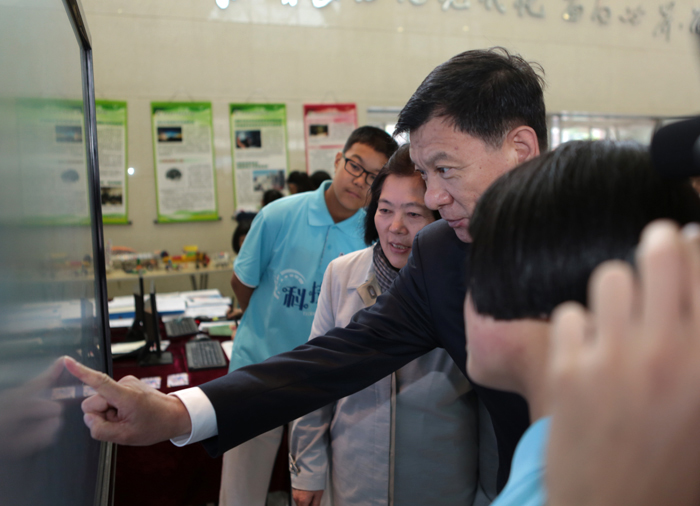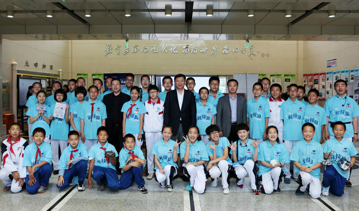 14点,潘厅长一行三人抵达学校,刚踏入科技楼就看到了楼内人潮涌动的情景,是什么吸引了孩子们呢?带着疑惑与好奇,潘厅长和各位领导跟随着各展区负责讲解的小志愿者们,参与了我校的“科学圆梦生活·科技炫动校园”主题科技周活动。精彩酷炫的影视后期制作、动感活泼的机器人、畅想未来科技的动漫、神奇的3D打印机、引人入胜的科普读物、小巧灵动的飞机模型,还有充满创意的科学小发明……各种图文并茂且带有参与式体验的活动将领导们也带入了一个神秘的科学世界,潘厅长情不自禁地和孩子们一起动了起来,参与并体验着科学技术带给人类的不可思议与巨大震撼,和省二学子共享这份“有趣”、“好玩”、“快乐”的校园时光。